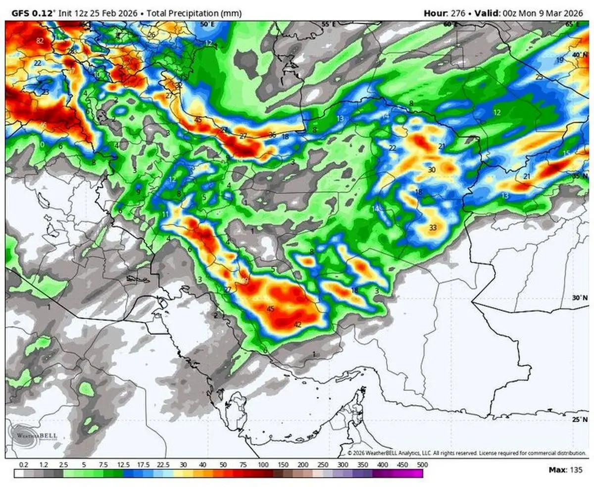وی افزود: فردا (چهارشنبه ۱۳ اسفند) در برخی مناطق شمال شرق، شرق، جنوب و جنوب شرق و بخش‌هایی از مرکز کشور و روز پنجشنبه (۱۴ اسفند) در برخی مناطق شمال غرب، غرب استان‌های ساحلی دریای خزر و ارتفاعات و دامنه‌های جنوبی البرز و جمعه (۱۵ اسفند) در شمال شرق کشور نیز بارش باران دور از انتظار نیست.