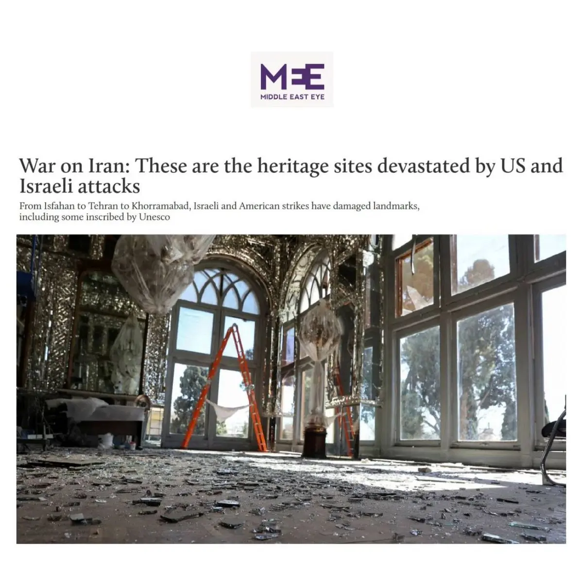 رسانه «میدل ایست آی» در گزارشی مدعی شد که حملات آمریکا و اسرائیل در جریان تنش‌های اخیر به برخی مناطق ایران، موجب آسیب به بخش‌هایی از میراث فرهنگی و تاریخی کشور شده است.