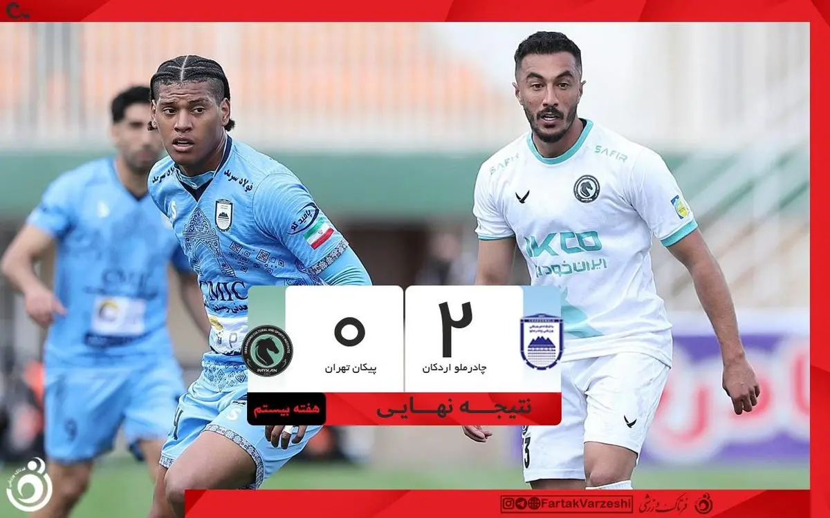 صفحه اصلی ورزشی کدخبر: ۵۵۳۴۳۳ // ۱۹ بهمن ۱۴۰۴ // ۱۷:۰۴:۱۹ لینک کپی شد خلاصه بازی چادرملو اردکان ۲ - پیکان ۰ + ویدئو خلاصه بازی چادرملو اردکان - پیکان در چارچوب رقابت های لیگ برتر ایران 1404/05 - هفته 20 حتما بخوانید: قیمت جدید محصولات کرمانموتور اعلام شد؛ لیست بهمن ۱۴۰۴ هشدار مهم درباره دستمزد ۱۴۰۵ کارگران؛ معیشت در خطر؟ قیمت دینار عراق امروز دوشنبه ۲۰ بهمن ۱۴۰۴ آنچه دیگران میخوانند : جهش عجیب قیمت تارا؛ سود ۲۳۰ میلیونی خریداران! وام ۱.۵ میلیاردی رسالت؛ بدون ضامن و با کارمزد کم قیمت گوشت قرمز امروز ۱۹ بهمن ۱۴۰۴؛ بازار در شوک گرانی؟ لینک مطلب: کپی شد آیا این خبر مفید بود؟ 0 0 صفحه اصلی ورزشی کدخبر: ۵۵۳۴۳۳ // ۱۹ بهمن ۱۴۰۴ // ۱۷:۰۴:۱۹ لینک کپی شد برچسب ها: پیکان خلاصه بازی چادرملو اردکان