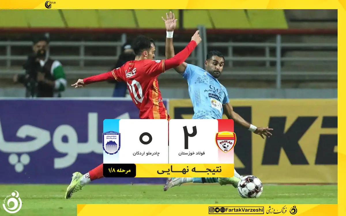 تیم فوتبال فولاد خوزستان با برتری اقتصادی مقابل چادرملو راهی مرحله یک چهارم نهایی جام حذفی شد.