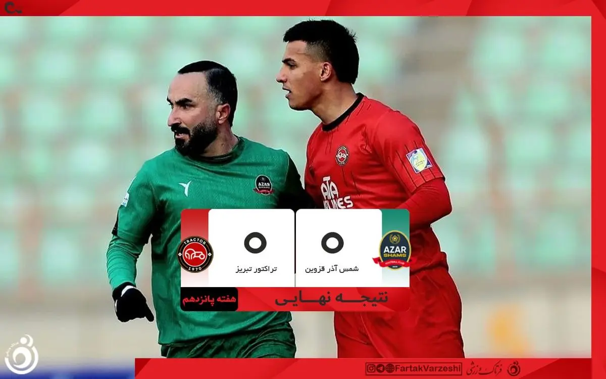 دیدار تیمهای شمسآذر قزوین و تراکتور تبریز در هفته پانزدهم لیگ برتر فوتبال ایران با تساوی بدون گل به پایان رسید تا شاگردان دراگان اسکوچیچ دو امتیاز مهم را در کورس قهرمانی از دست بدهند.