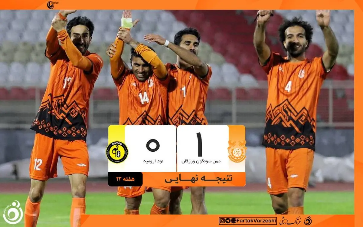 مس سونگون در هفته بیستوسوم لیگ دسته اول فوتبال کشور به پیروزی حساسی مقابل نود ارومیه دست یافت؛ بردی که امیدهای این تیم برای بقا در لیگ را زنده نگه داشت.
