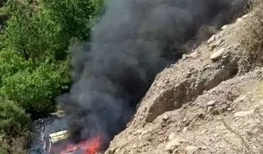 یک دستگاه خودروی وانت پیکان به دلیل سقوط به دره در آتش سوخت و راننده آن جان خود را از دست داد.