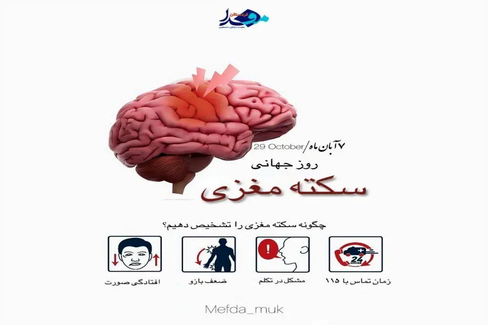 به مناسبت روز جهانی سکته مغزی (۷ آبان) یادمان باشد: اگر کسی ناگهان دچار افتادگی صورت، ضعف در بازو یا مشکل در صحبت شد، بدون درنگ با ۱۱۵ تماس بگیرید.