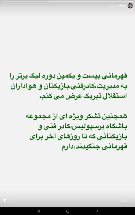 دایی در صفحه شخصی خود قهرمانی تیم استقلال را تبریک گفت.